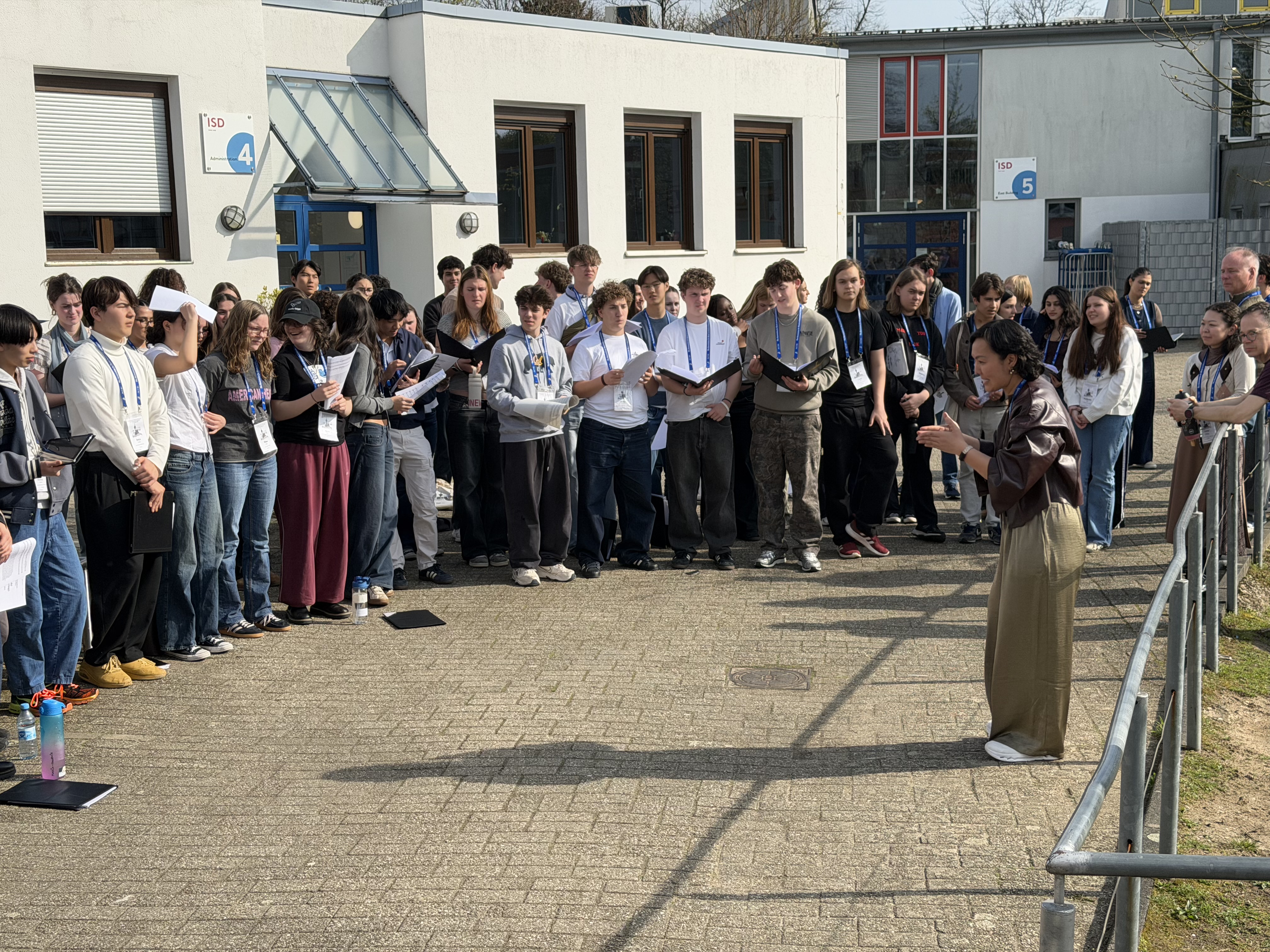 We performed 8 pieces together (concert program). Although every piece was chosen for a reason, there are definitely a few performance highlights. First, the students sang a piece in Mandarin - 蒲公英 (Dandelion), and to hear them sing it like they genuinely understand each character was absolutely moving. Second highlight - we did a TaReKiTa! by Reena Esmail (a South Indian- American) composer. Two South Asian students, one from Belgium, another from Switzerland, asked to introduce it at the concert together. In their emcee speech, they said this was the first time they understood diversity efforts, because they saw themselves and their culture represented. We ended with sîkwakhi by Sherryl Sewepagaham (Woodland Cree composer from Little Red River - an indigenous community in Alberta) and sang it in Woodland Cree (in Germany!) combining with 100 middle school choir students. Sherryl had zoomed in for an hour session (on her way to the Juno ceremony!). These students had no idea why this was important to Canadians. sîkwakhi opened a door for international students to learn about truth and reconciliation, and hopefully to long to learn more.